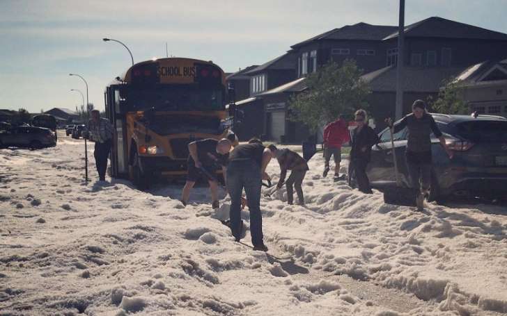 AAy2pGF © Jocelyn Mariel Several Moose Jaw residents band together to shovel out a school bus that became stuck in the street.